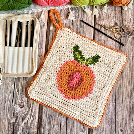 Peachy Clean Summer Dishcloth or Washcloth Tapestry Crochet Pattern (Whole Peach Design)