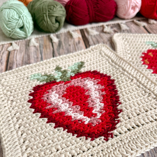 Strawberry Season Summer Dishcloth or Washcloth Tapestry Crochet Pattern Bundle