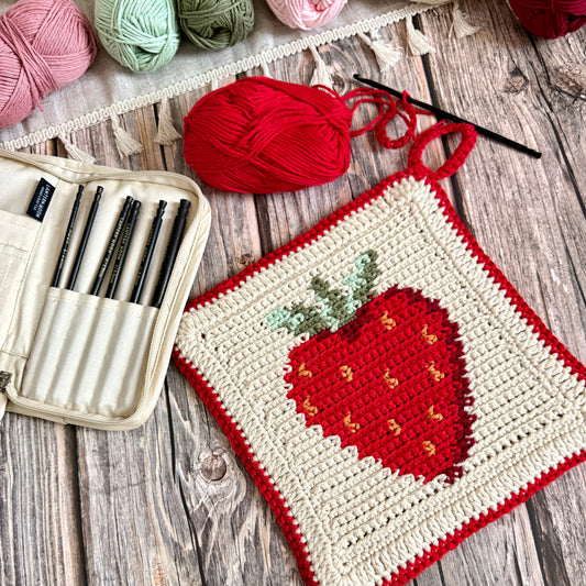 Strawberry Summer Dishcloth or Washcloth Tapestry Crochet Pattern (Strawberry Season Design)