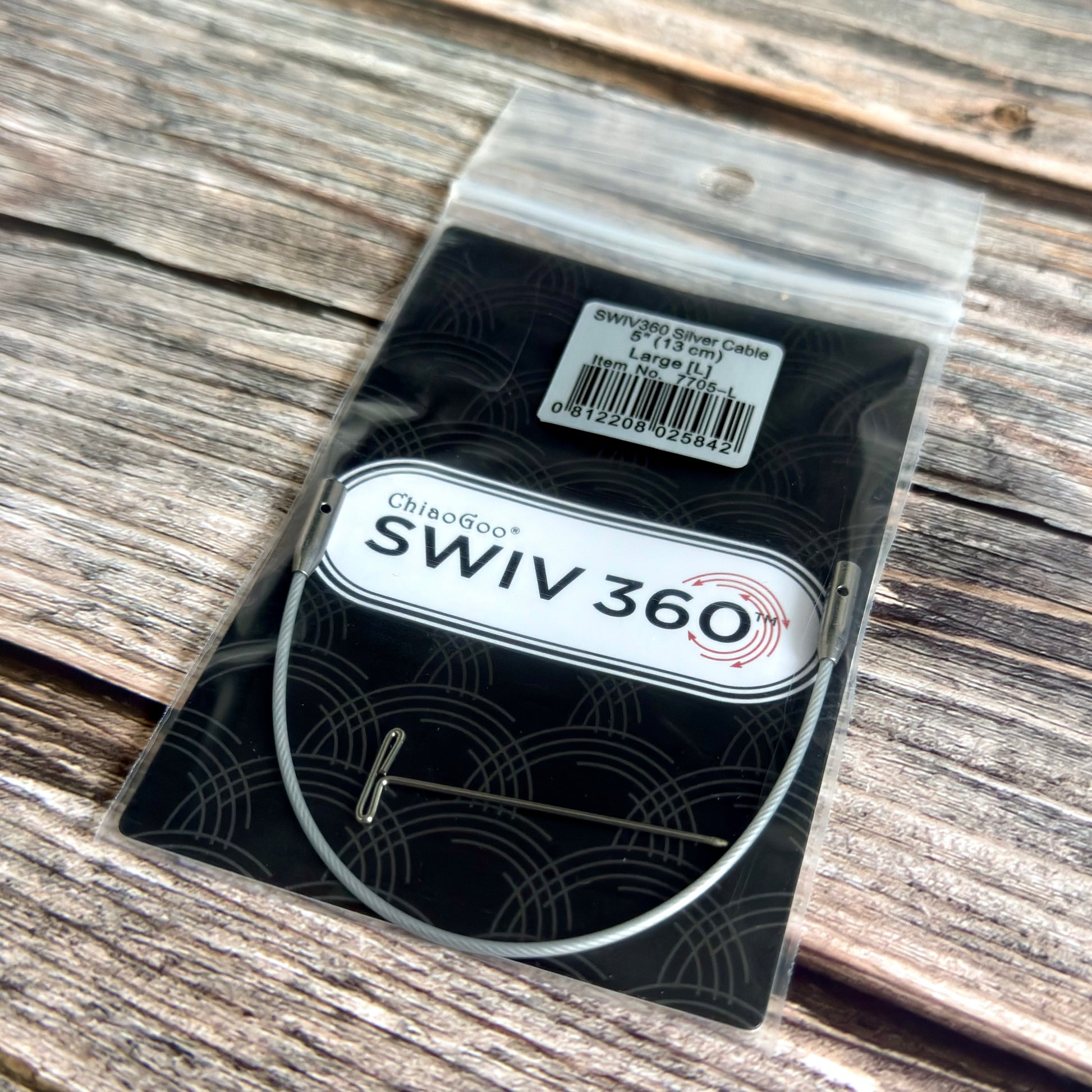 ChiaoGoo SWIV360 interchangeable cables combine the key benefits of both ChiaoGoo cable systems: the memory-free steel construction of TWIST™ cables and the fully rotating connector of SPIN™ cables. The result is a flexible, durable cable that stays straight while allowing the needle tips to rotate freely as you knit.
