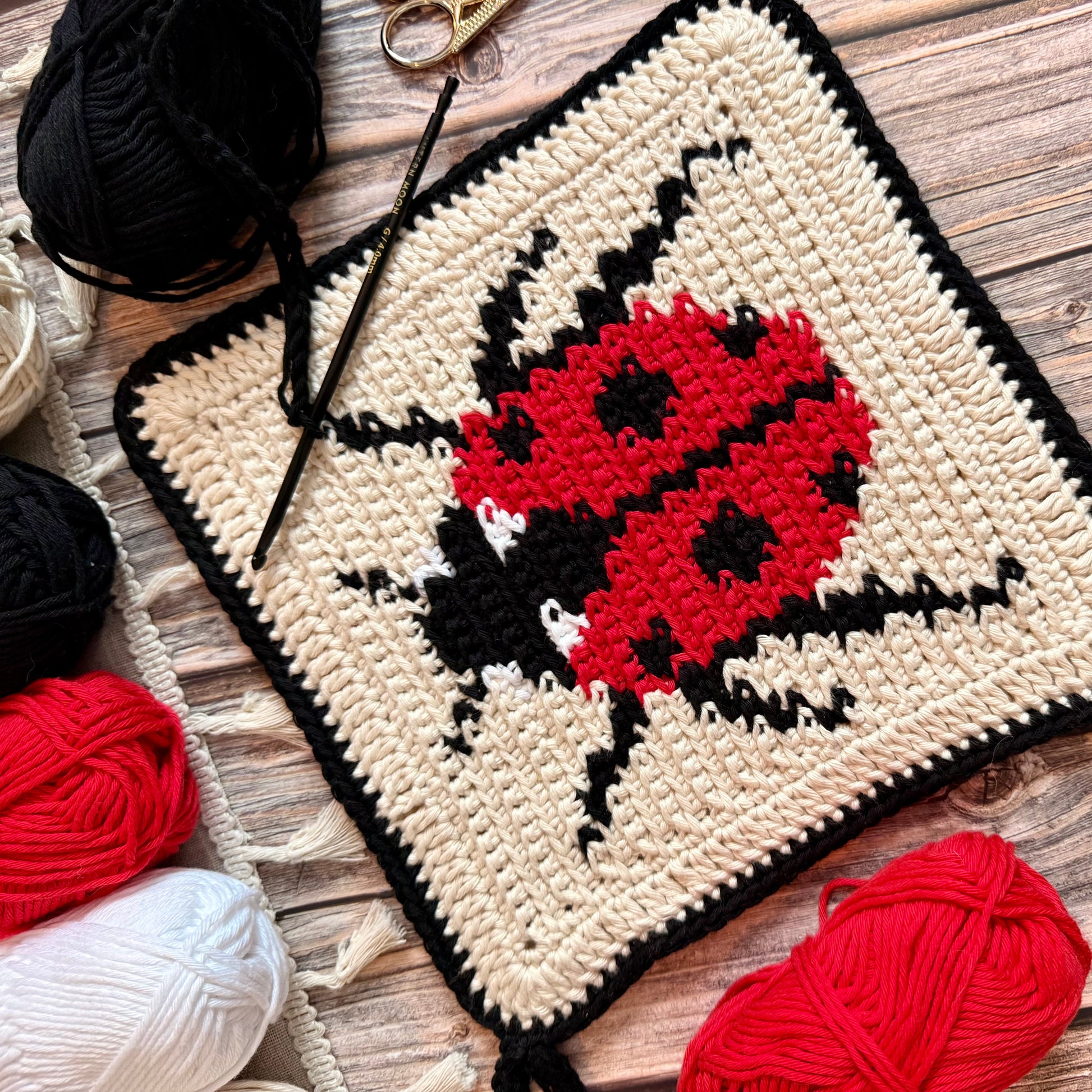 Add a cheerful and colourful touch to your kitchen with Ladybird Lane, a bright, double-layered crochet potholder featuring a bold ladybird (ladybug) motif. With its classic red, black, and off-white palette and nostalgic country-kitchen charm, this design brings both warmth and personality to your home.