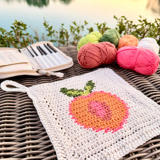 Peachy Clean Summer Dishcloth or Washcloth Tapestry Crochet Pattern (Whole Peach Design)