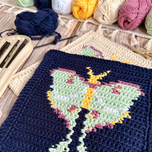Luna Moth Tapestry Crochet Pattern: Dishcloth or Washcloth Pattern