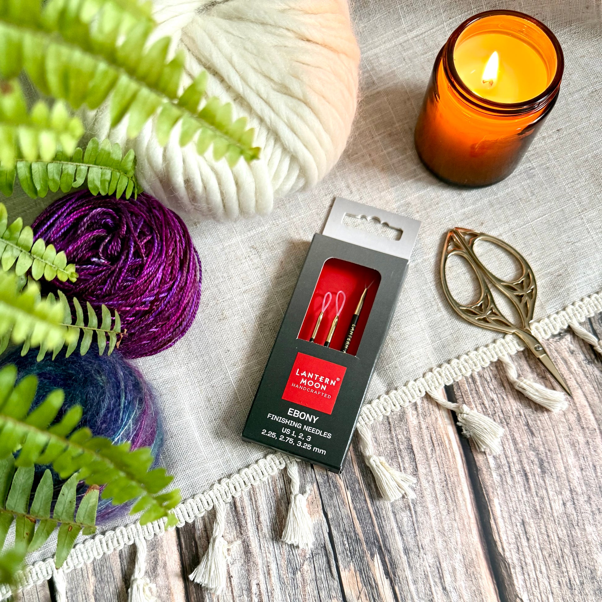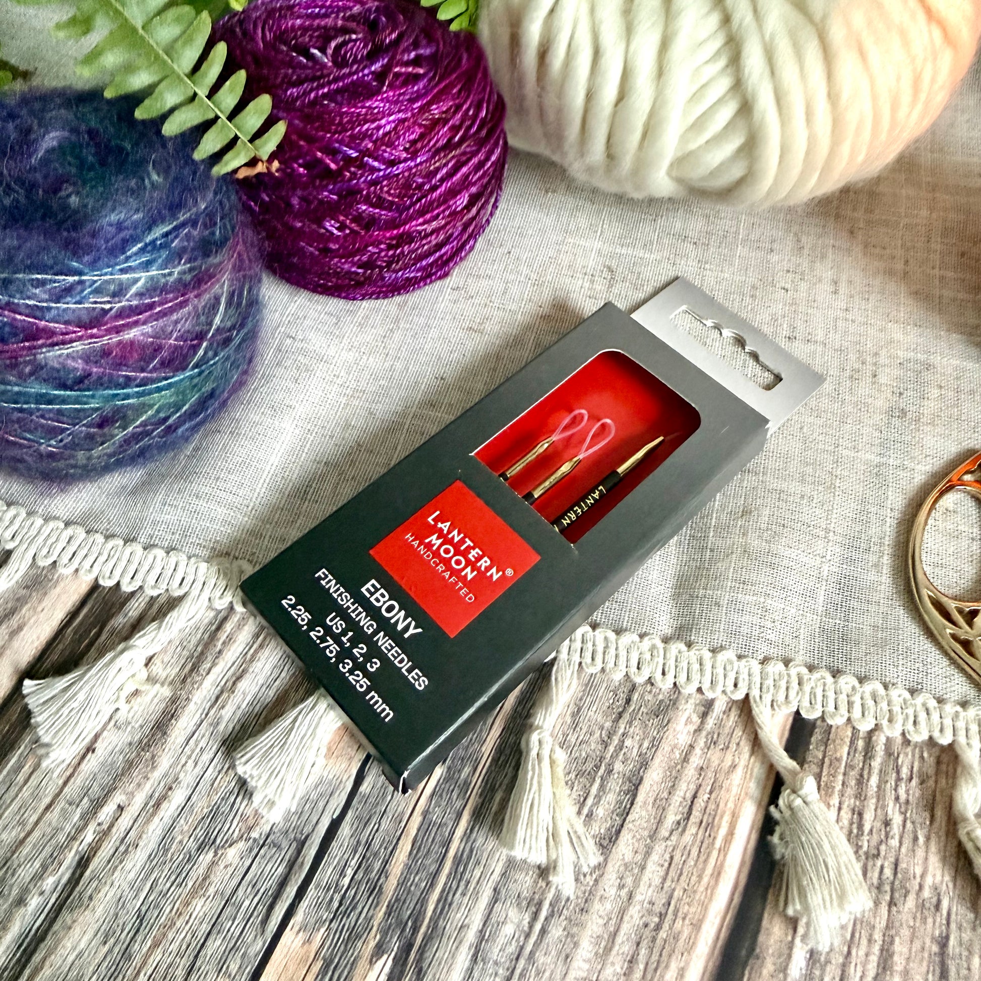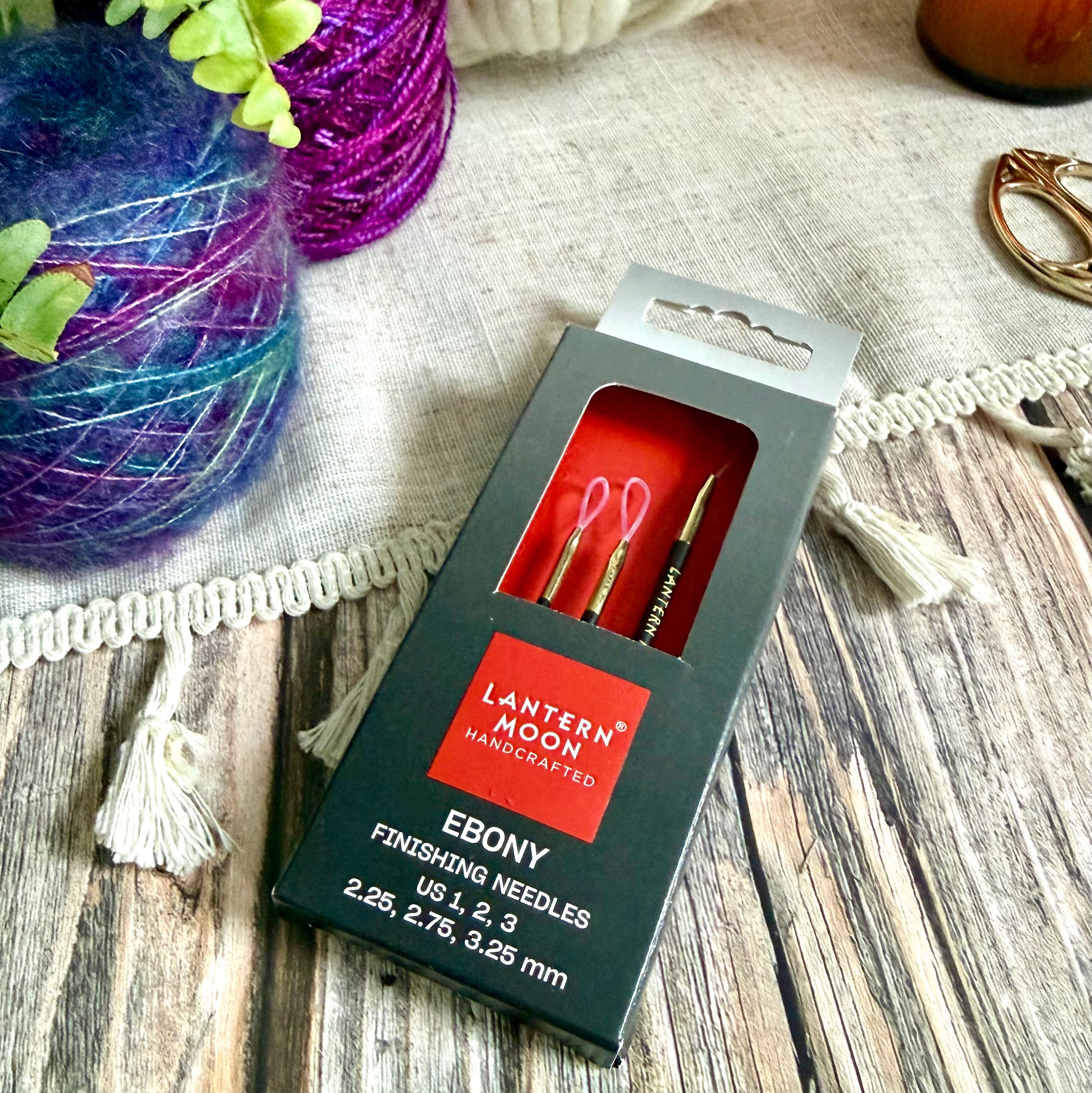 The Lantern Moon Ebony Wood Finishing Needles are designed for neat, accurate finishing work on knitted and crocheted projects. Made from sustainably sourced ebony wood, these needles have a smooth, polished surface that allows them to glide easily through fabric without snagging or splitting yarn.