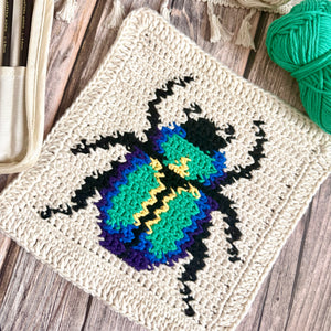 Add a bold pop of colour to your kitchen or bathroom with this striking scarab beetle tapestry crochet pattern. Designed as a textured cotton dishcloth or washcloth, this vibrant design brings personality and handmade charm to any space. Fun, practical, and quick to make – it's also perfect for unique gifts or colourful everyday use.