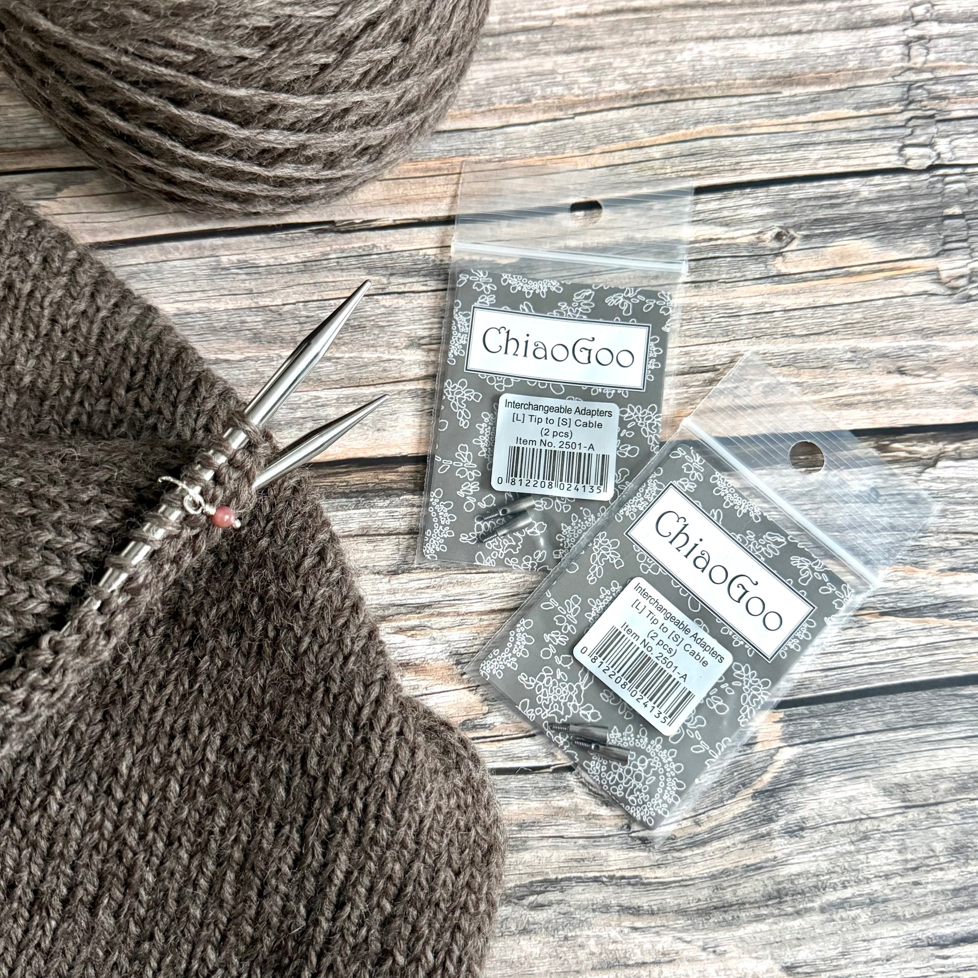 ChiaoGoo Cable to Tip Adaptors allow you to connect different size cables and tips, giving you greater flexibility when working with interchangeable needle systems.