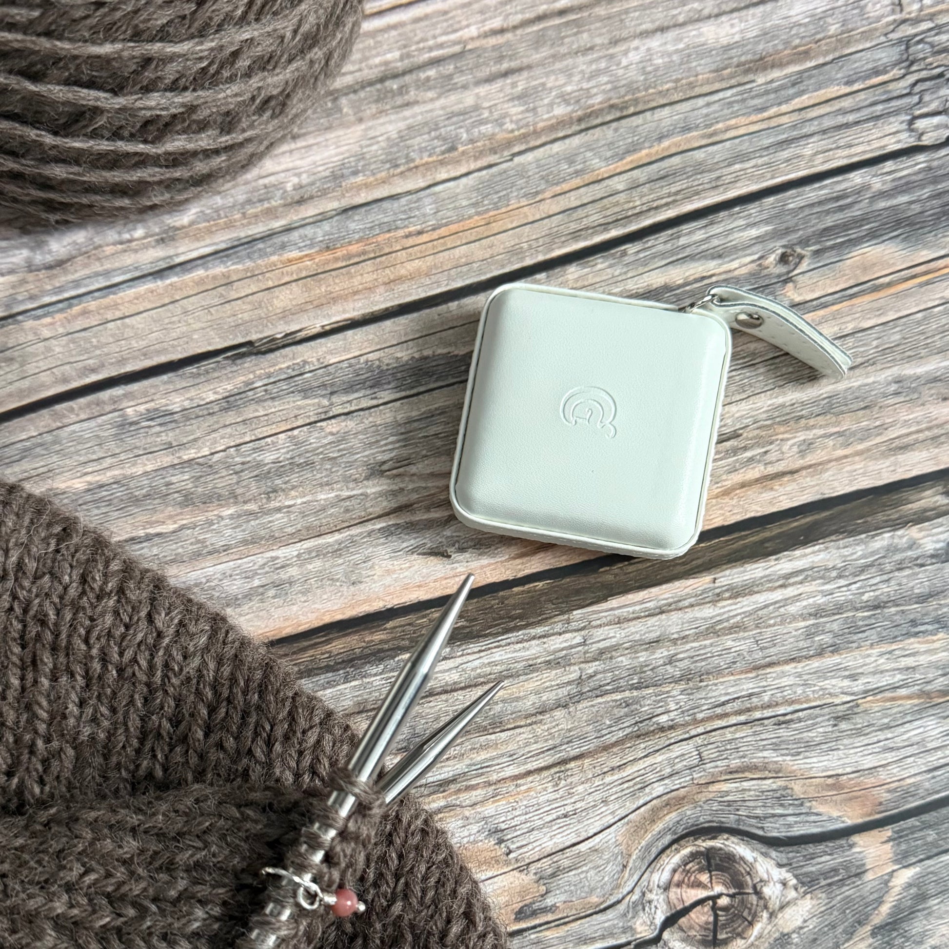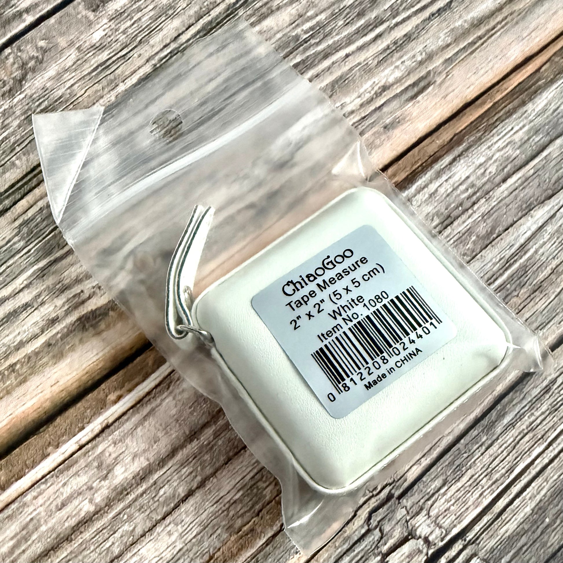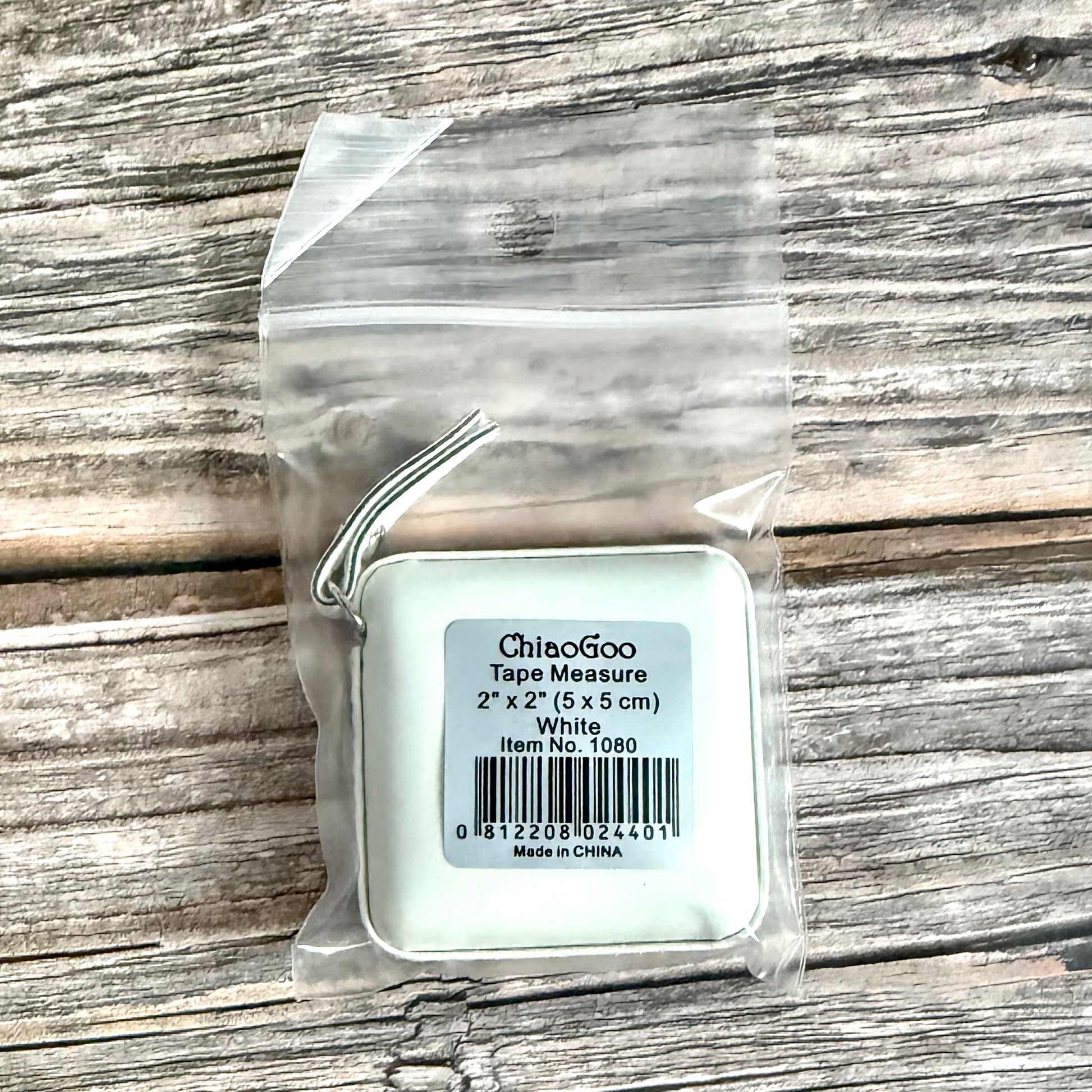 A compact, retractable tape measure from ChiaoGoo, ideal for knitting, crochet, and general crafting.