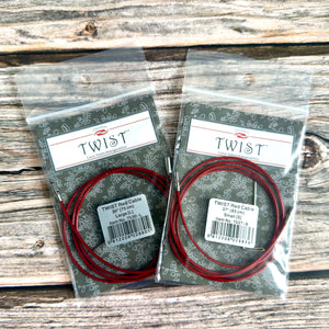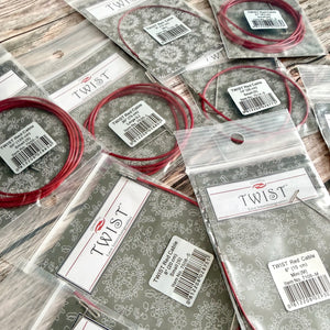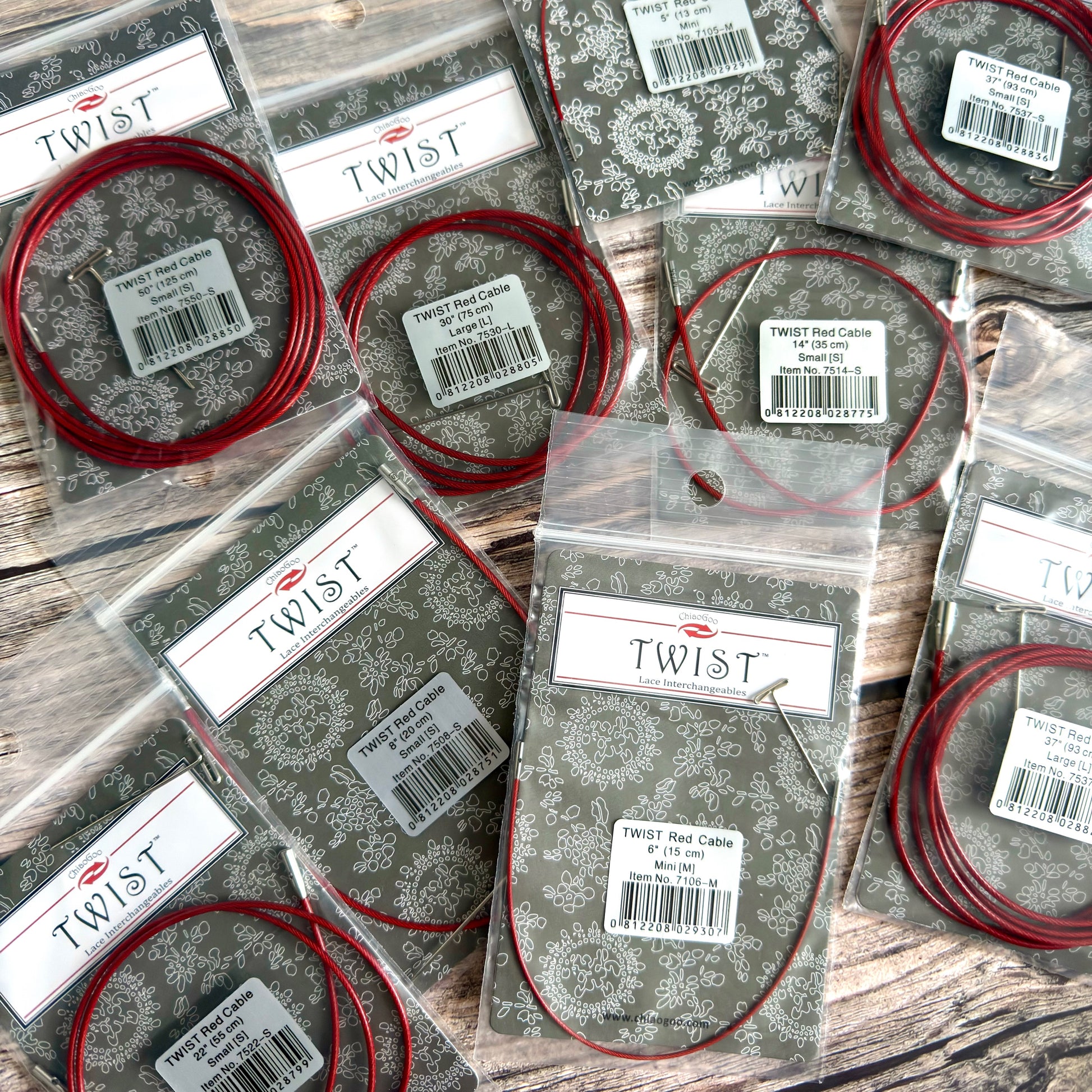 ChiaoGoo TWIST™ Lace interchangeable cables are designed to provide a smooth, flexible knitting experience without the frustration of cable memory. Made from a multi-strand steel cable coated in red nylon, TWIST™ Lace cables are strong, supple, and remain straight while you knit, even after being stored.